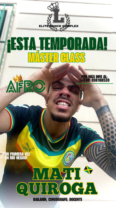 Mati Quiroga, bailarín, docente, coreógrafo, Director de “Afrontalo” llega por primera vez a Fray Bentos para impartir una clase totalmente ÚNICA en la ciudad. ¿Qué esperas? Explora la riqueza de los ritmos africanos con el mejor indiscutido de la región!.